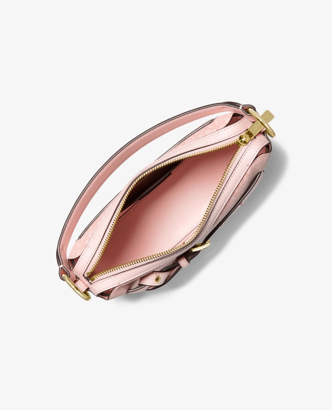 MK's logo-print Emilia shoulder bag will top off any look with a signature style. Designed in a half-moon shape, it features modern details like a belt loop accent and a removable crossbody strap for a hands-free style. Team it with the season’s ultra-chic dresses or casual-cool separates.